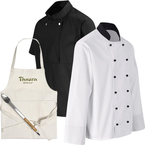 Dress the part with chef coats, aprons, & tailored uniforms for comfort & professional styling. Add your branding & keep your staff safe but chic.